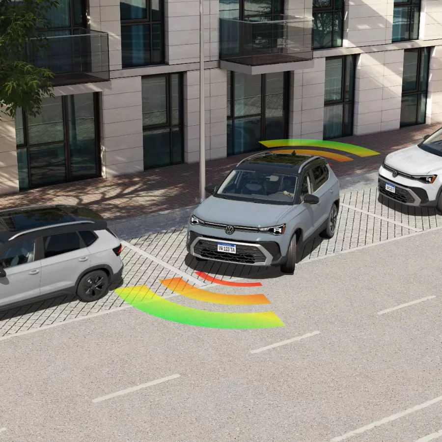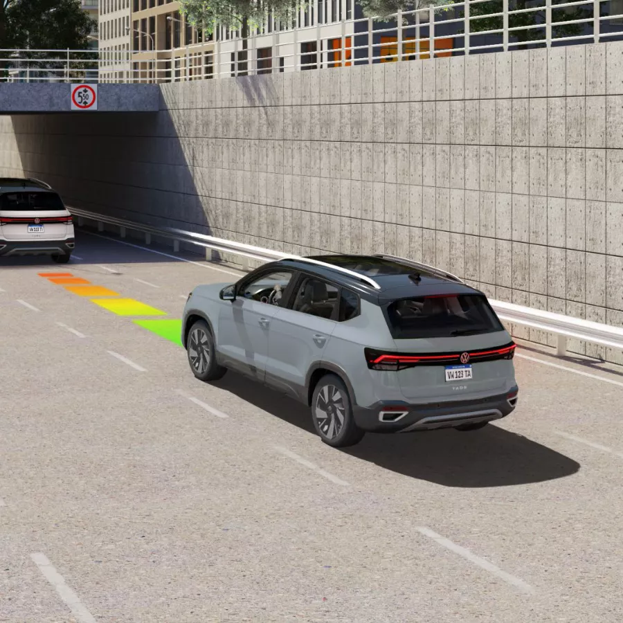 El Nuevo Taos está equipado con cámara de visión trasera que asiste en maniobras y estacionamiento. Alerta sobre la proximidad de objetos durante maniobras a baja velocidad mediante señales acústicas y sonoras.